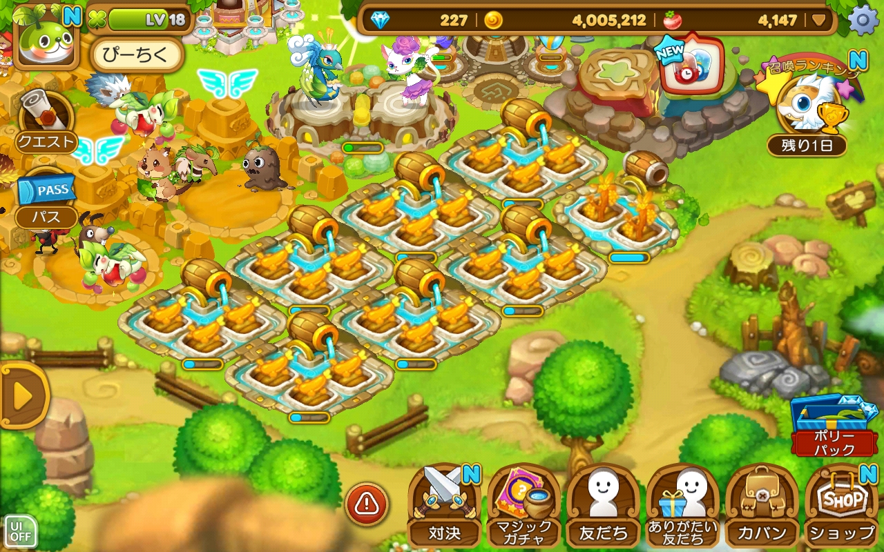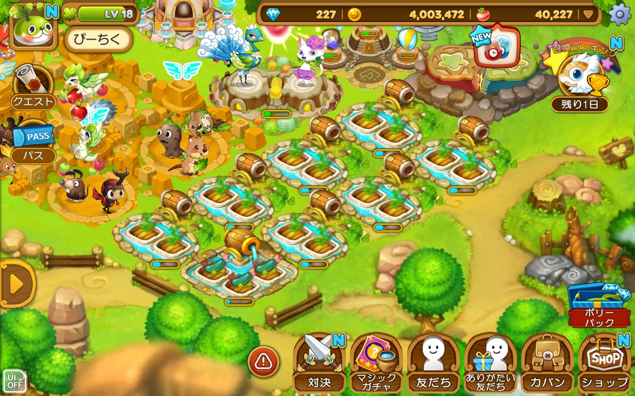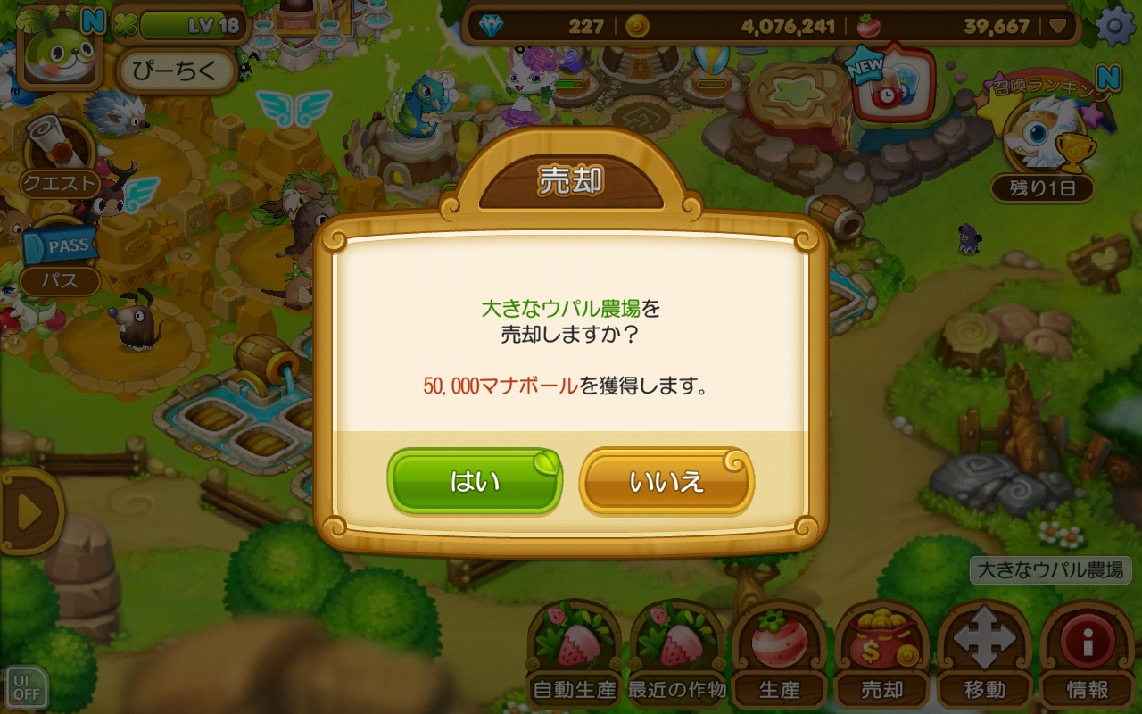 マナボールを安定して入手できるまでは「ウパル農場」でとどめたが良い気がします。「大きいウパル農場」は、建物も高いし農作物もマナボールがたくさん必要です。他の人から貰える “スペシャル種” を多く受け取れる環境なら、なおさら「ウパル農場」をオススメします。
