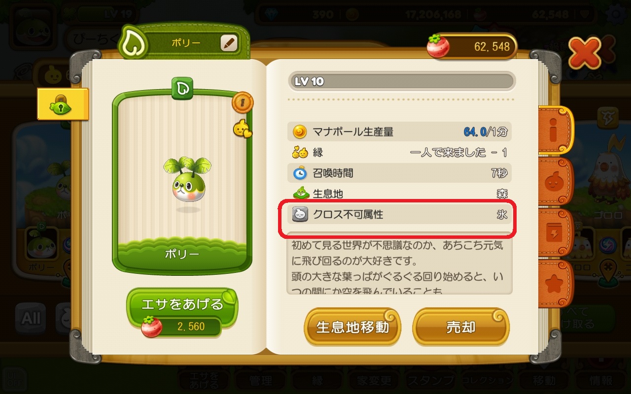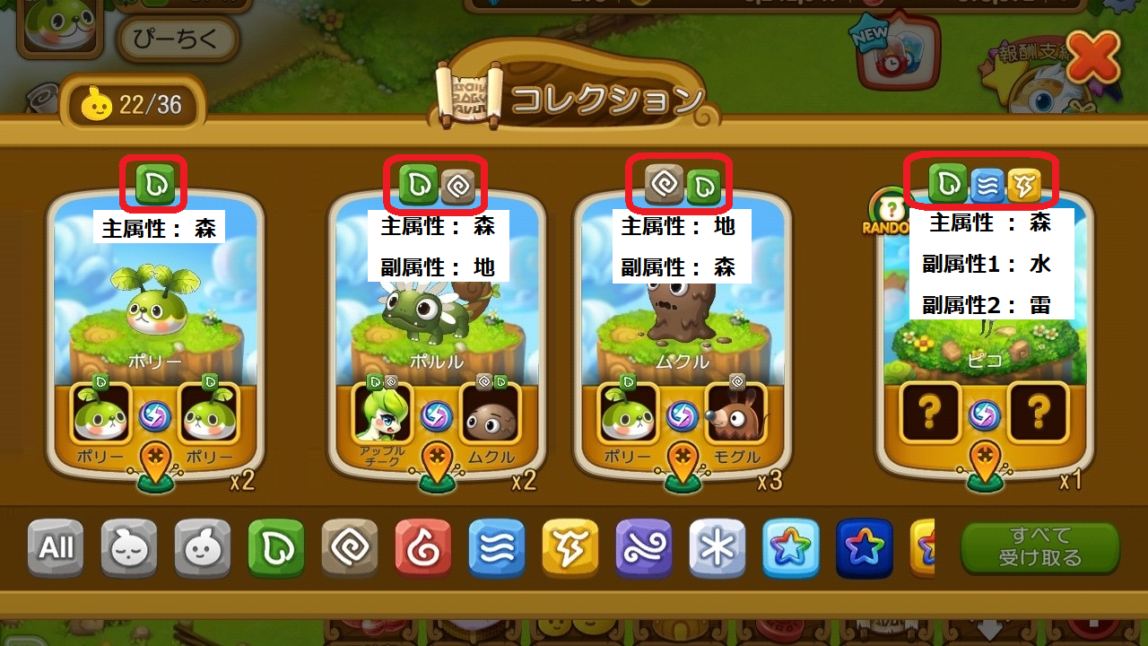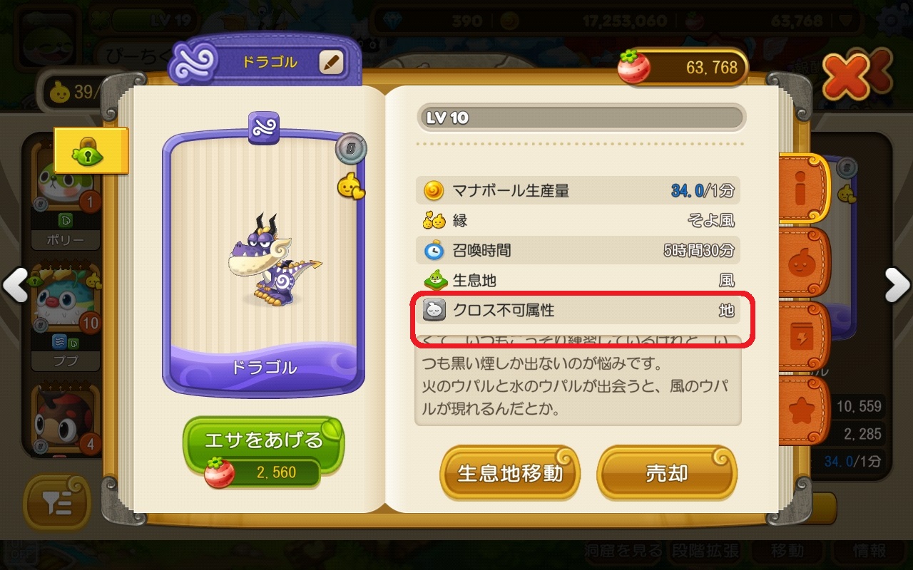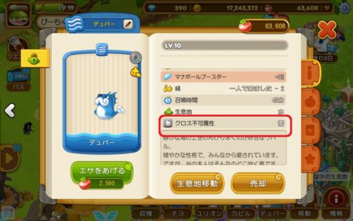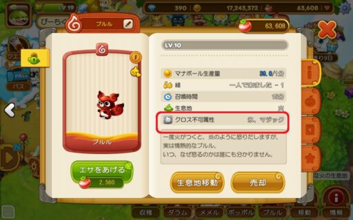 属性は、どの生息地に住まわせるかや、他のウパルとの戦いの時、クロスして召喚石を作る時に考慮するゲーム要素です。