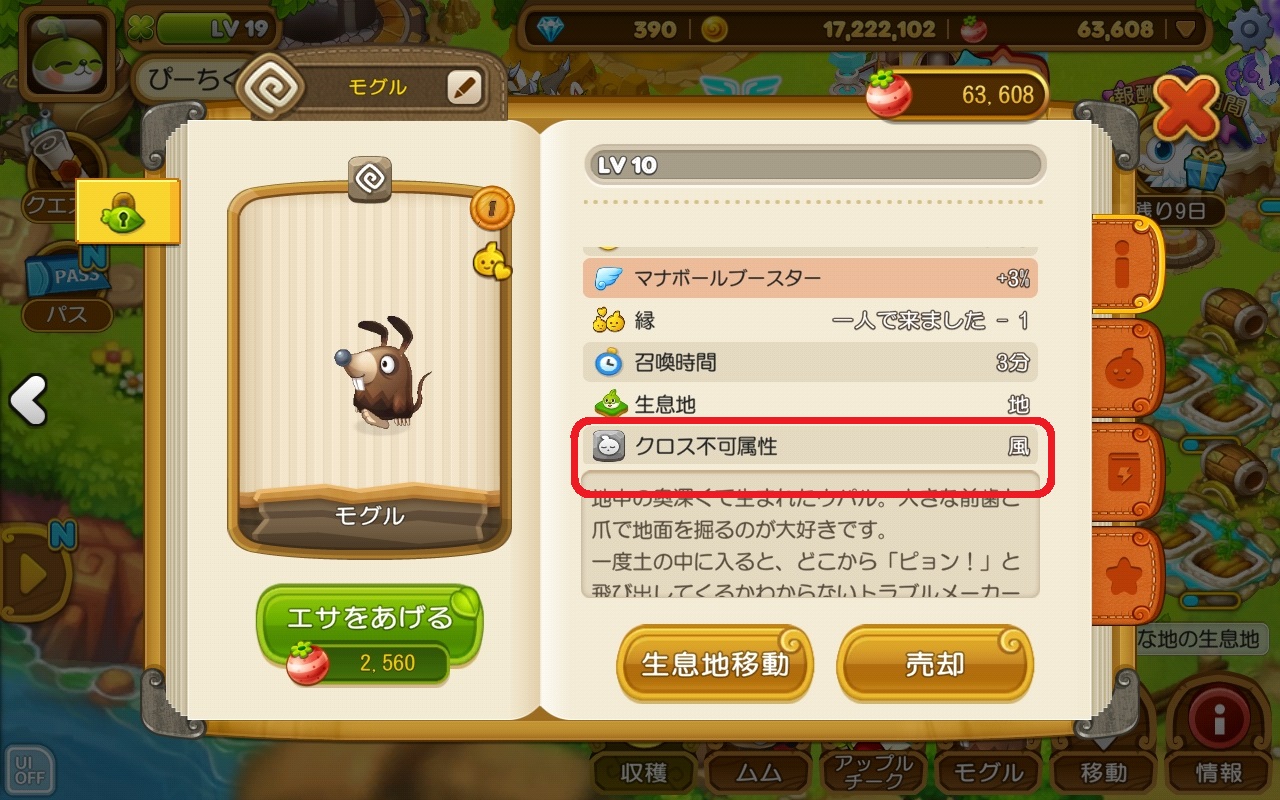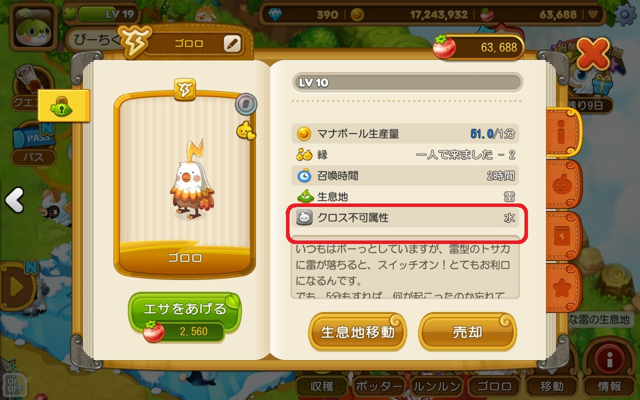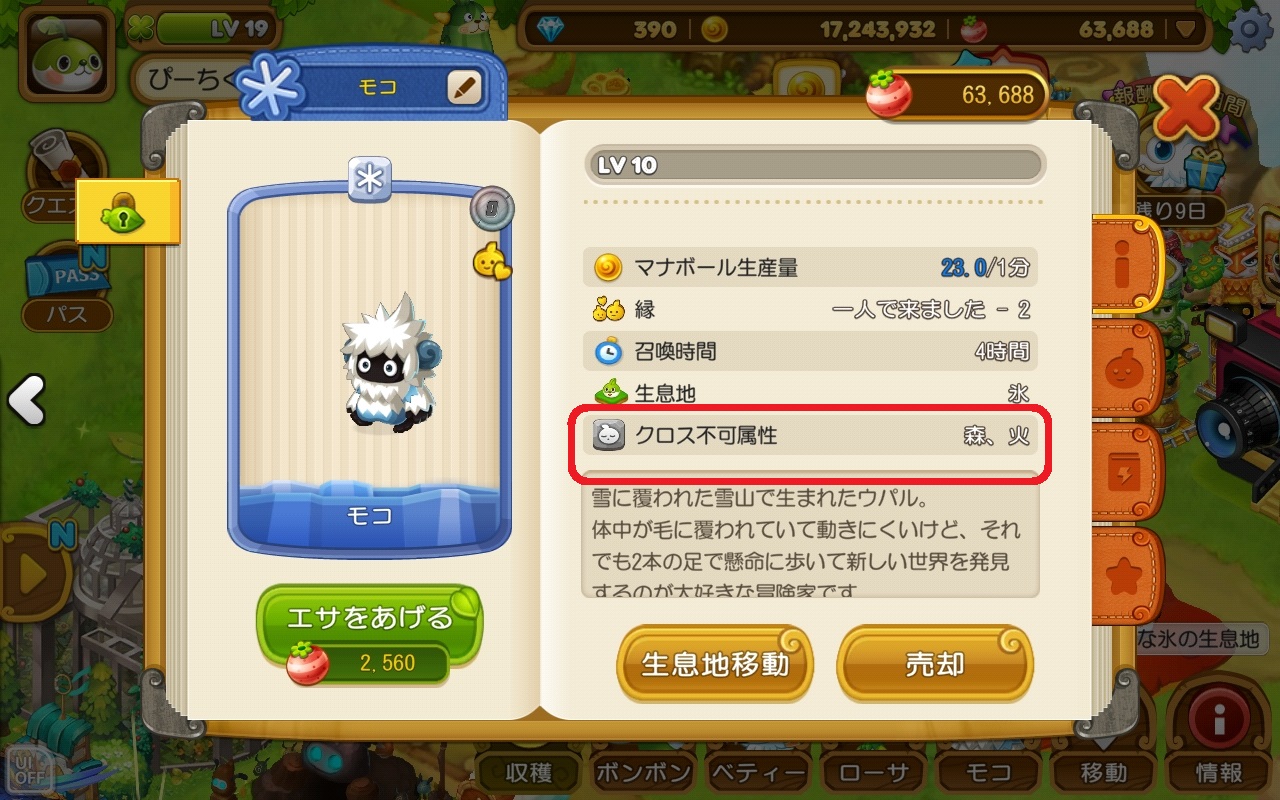 属性は、どの生息地に住まわせるかや、他のウパルとの戦いの時、クロスして召喚石を作る時に考慮するゲーム要素です。