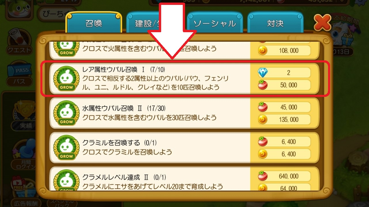 • ガチャを回す(プレミアムガチャなら、初回のみ10連ガチャると、ウパルを確定で入手可)
