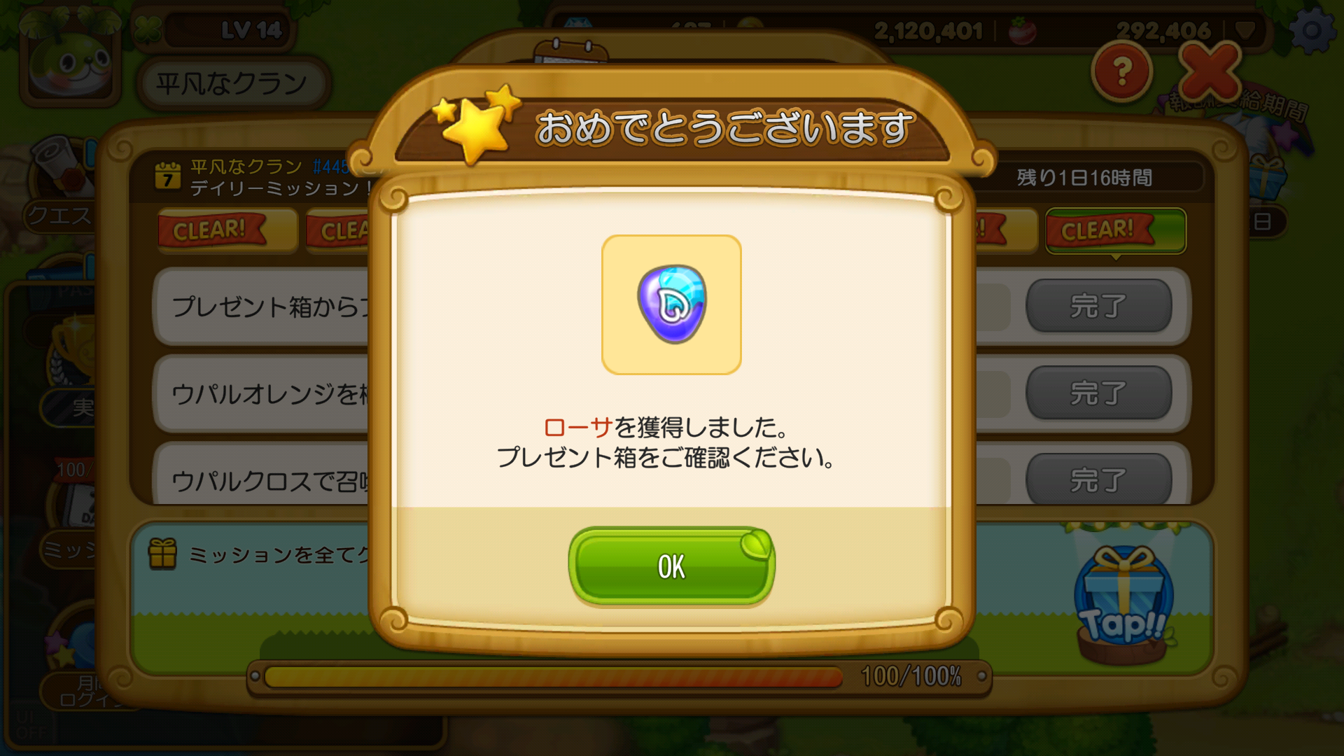 朝9時になるとリセットがかかり、広告視聴や、他の人に宝石や種などを配れるようになります。