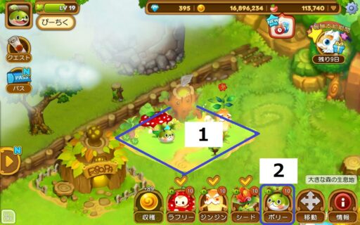 ウパルを生息地に住まわせたり、売却やレベルアップの材料に使うためには、2段階の工程があります。